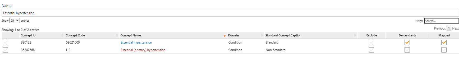 The use case for using the ‘mapped’ option is to pull in ‘source concepts’ into your concept set expression. This supports use cases where the researcher wants to focus on one particular coding system (such as ICD9 or ICD10) for their code lists.